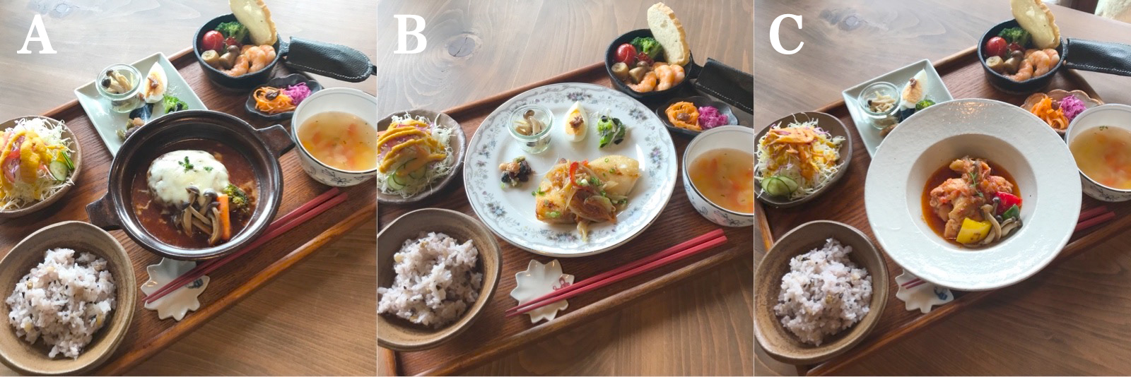 メイン料理(雑穀米ごはんor手作りパン・麹スープ・小鉢・サラダ付)
